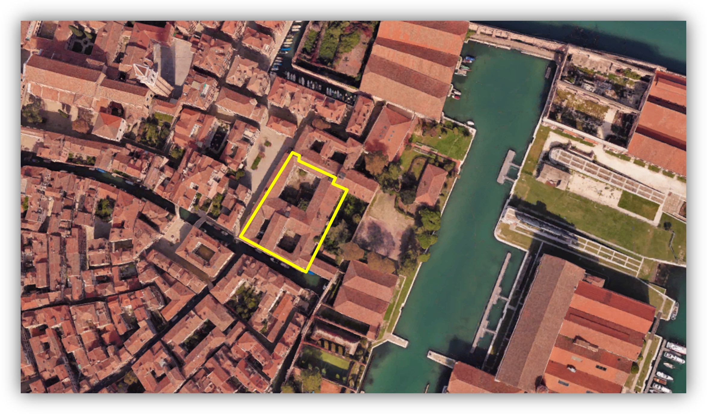 Il compendio è ubicato nel centro della Città Storica di Venezia, nel Sestiere di Castello, in prossimità del complesso monumentale dell’Arsenale di Venezia, inserito in un contesto circostante prettamente residenziale. Il complesso è raggiungibile con l’ausilio di mezzi pubblici di navigazione o a piedi; in considerazione alla sua ubicazione si possono definire buoni i collegamenti pubblici e buono il contesto circostante relativamente ai servizi offerti.
