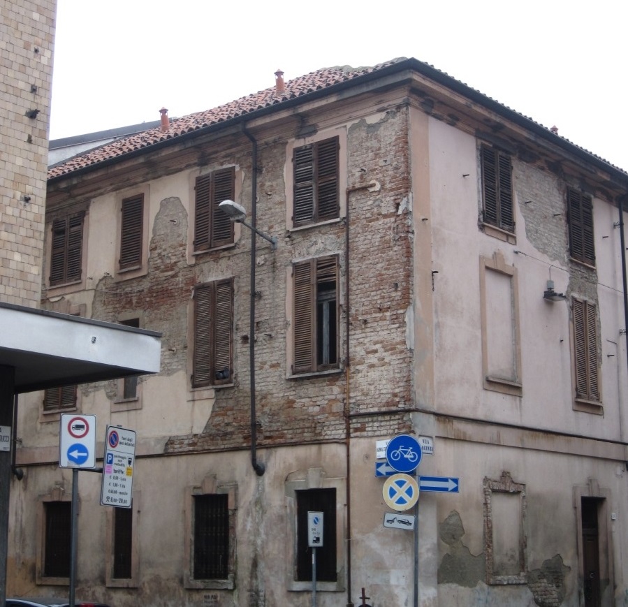 Il compendio è costituito da un corpo di fabbrica con pianta ad “elle” che si affaccia lungo le vie Arnaldo Da Brescia e Piacenza. Si eleva tre piani fuori terra ed è realizzato con struttura in muratura, tetto a due falde con struttura lignea e coperture in coppi. Dispone di corte pertinenziale con un basso fabbricato a uso deposito.