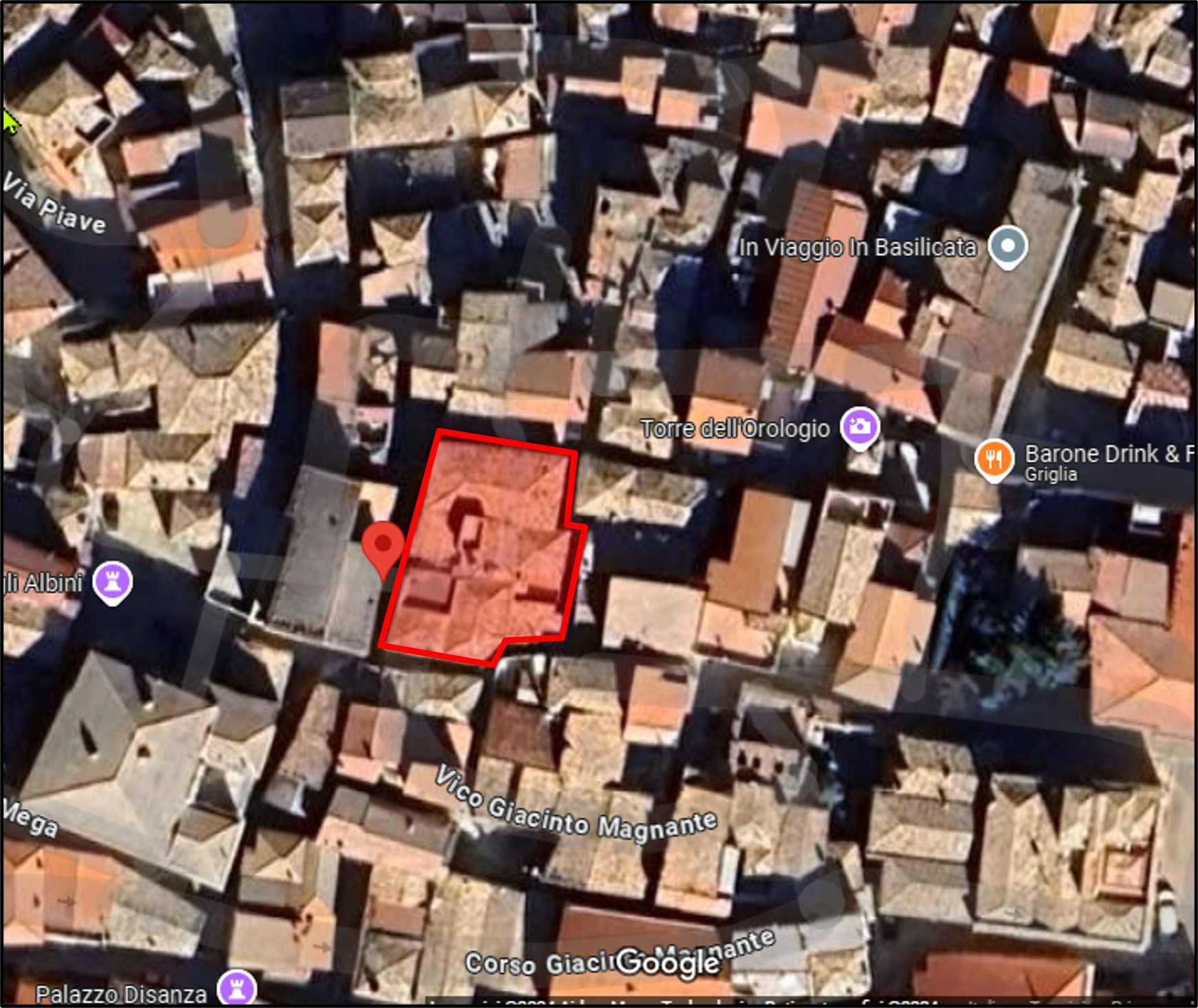 Il fabbricato è situato nel centro storico di San Mauro Forte in provincia di Matera, in zona pedonale, a pochi metri dalla Chiesa madre e dalla Torre Normanna. Il fabbricato occupa l’intero isolato, tra via Salvatore Viggiani, Vico III Magnante Tenente, Via Giacinto Albini e Via Stanislao Lauria, con ingresso principale da Via Salvatore Viggiani, 3.