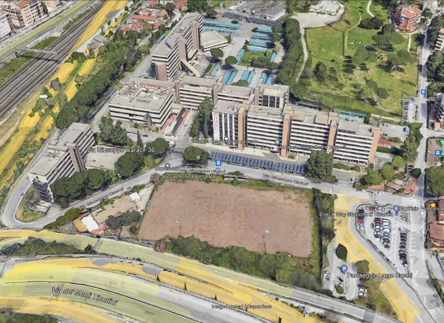Il compendio immobiliare è ubicato in via Caraci, collocato nella zona nord-est del Comune di Roma, all’interno del territorio del V Municipio, nel quartiere ponte Lanciani. L’area confina a est con via dei Monti di Pietralata, a sud con via Giuseppe Antonio Caraci e via Monti Tiburtini e ad ovest con la Tangenziale Est. Il compendio è raggiungibile da Ponte Lanciani e con mezzi pubblici dalla linea B della metropolitana, fermata Monti Tiburtini. E’ inoltre a 3 km dalla Stazione ferroviaria Roma Tiburtina, un’imporrante snodo ferroviario con treni regionali e nazionali.