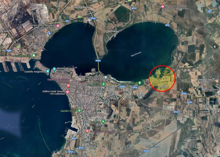 Il complesso è ubicato in zona periferica del Comune di Taranto, nella località Patrovaro e precisamente a sud-est del secondo seno del mar Piccolo, in collina, sulla sommità di un promontorio. Il contesto è caratterizzato prevalentemente da aree agricole.