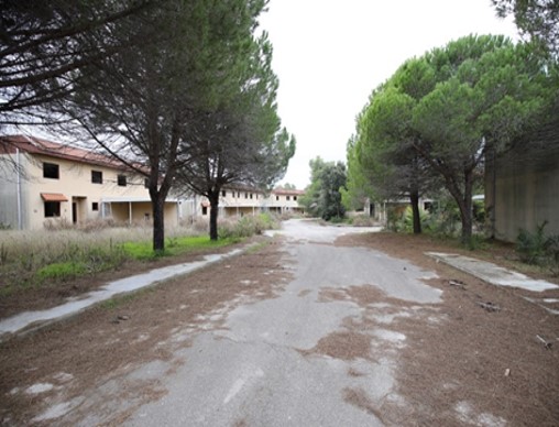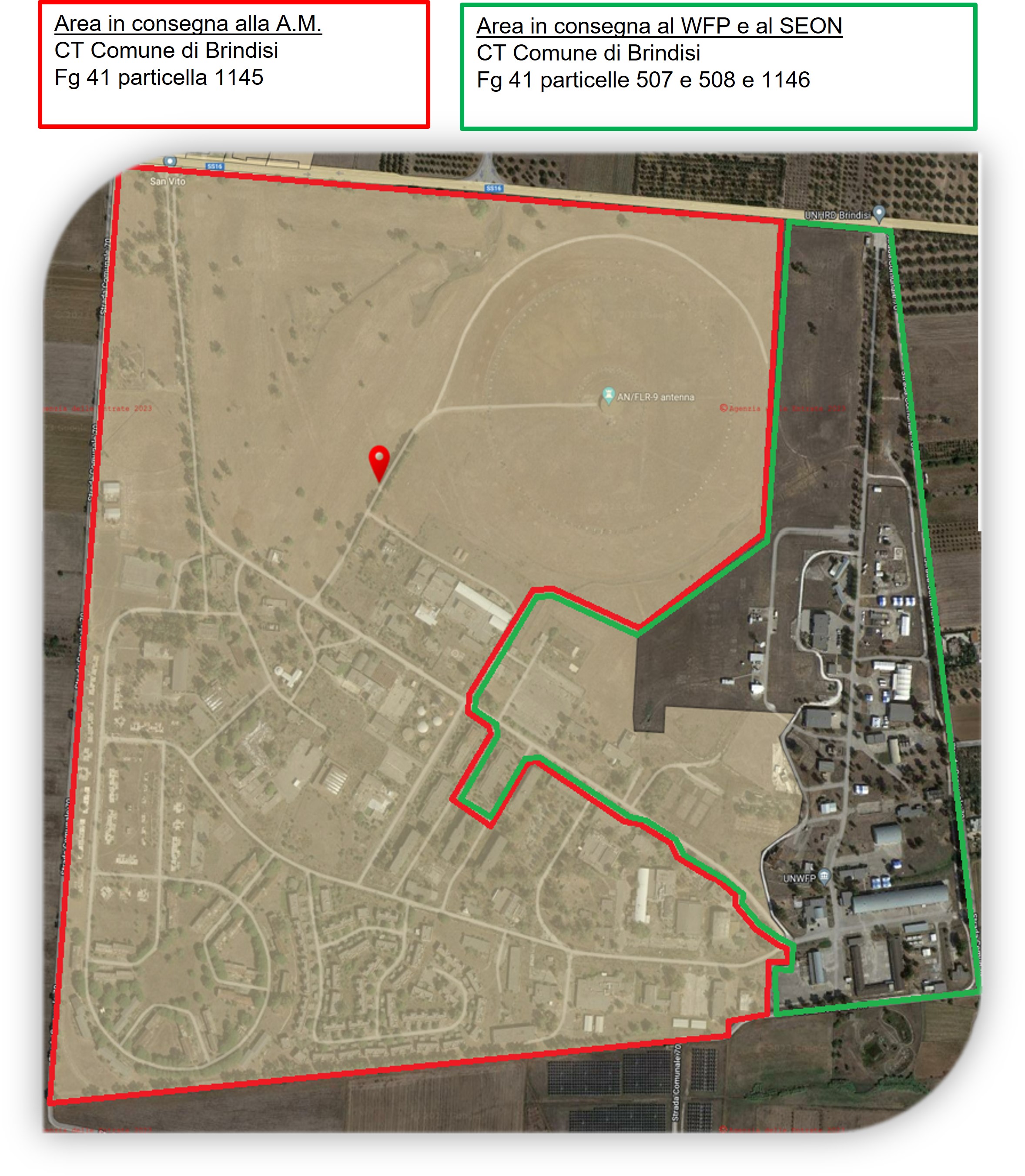 Il compendio si estende per circa 92 ettari su terreno pianeggiante, e costituisce parte del complessivo compendio che fu oggetto di consegna negli anni 1966 al governo U.S.A; non comprende, pertanto, la residua parte utilizzata dal «World Food Program» e dal «SEON» (particelle 1146, 507 e 508 del fg 41). All’interno della Base sono presenti fabbricati (alloggi, uffici, altro) per una superficie complessiva lorda di circa 98.000 mq, in pessime condizioni manutentive. È presente una rete stradale la cui superficie complessiva è di circa 140.000 mq. La base, è fornita di tutti gli impianti, che andrebbero tuttavia interamente sostituiti/rifunzionalizzati.