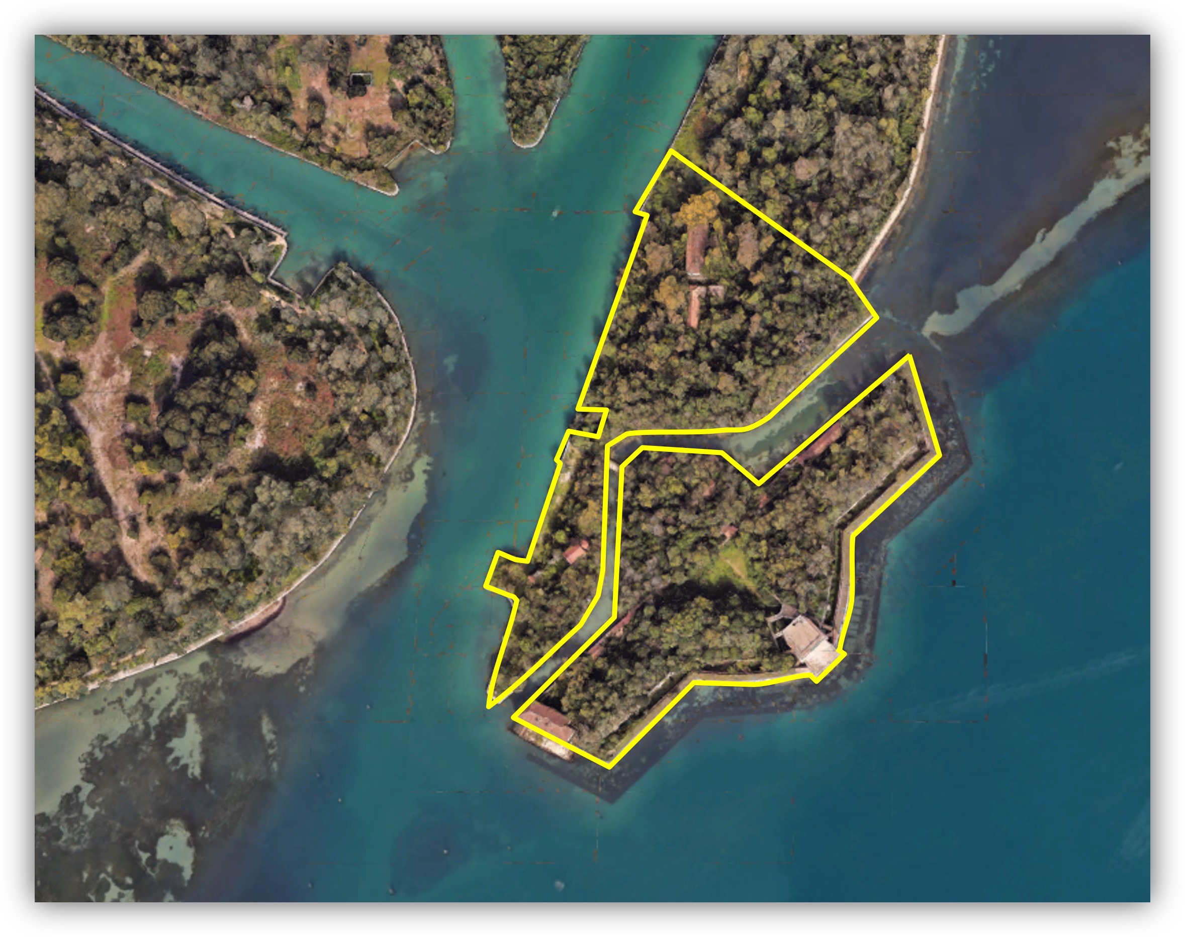 La fortificazione ha una dimensione imponente con circa trecento metri di fronte sull’acqua oltre il mastio centrale. Le mura bugnate sono caratterizzate dal portale centrale e da quaranta cannoniere poste a pelo d’acqua. Nella parte retrostante del mastio si sviluppa un sistema di spesse mura e scale finalizzate a rendere il forte invulnerabile al fuoco di una flotta nemica. Il forte venne edificato alla metà del ‘500 sui resti del “Castel Nuovo”, precedente struttura difensiva della bocca di porto, secondo il progetto dell’architetto Michele Sammicheli. Il complesso è stato più volte adattato all’evoluzione delle esigenze militari. Alla fine del Settecento, furono realizzate la costruzione su tre piani del fronte sud e le due costruzioni sul lato occidentale adibite a depositi di munizioni e magazzini. Durante il periodo Austriaco furono realizzati interventi che hanno modificato la morfologia del Forte, come la separazione della lunetta dal corpo dal Forte per mezzo di un canale. Nei primi anni del Novecento furono realizzati nuovi fabbricati in calcestruzzo come bunker e depositi. All’attualità non sono disponibili valutazioni di caratterizzazione sul rischio bellico. Il Forte ha un’estensione complessiva di circa 25.000 mq e al suo interno sono presenti ben diciassette edifici che sviluppano circa novemila metri quadri di superficie lorda. Si tratta di un’area molto estesa, in cui potranno trovare spazio la valorizzazione ambientale e paesaggistica degli spazi verdi, anche attraverso una regolamentata fruizione pubblica con vocazione ludico-sportiva. Attualmente il compendio del Forte S. Andrea è in disuso. È libero, non presentando occupazioni di nessun tipo, e per le porzioni ancora esistenti si presenta in discreto stato manutentivo.