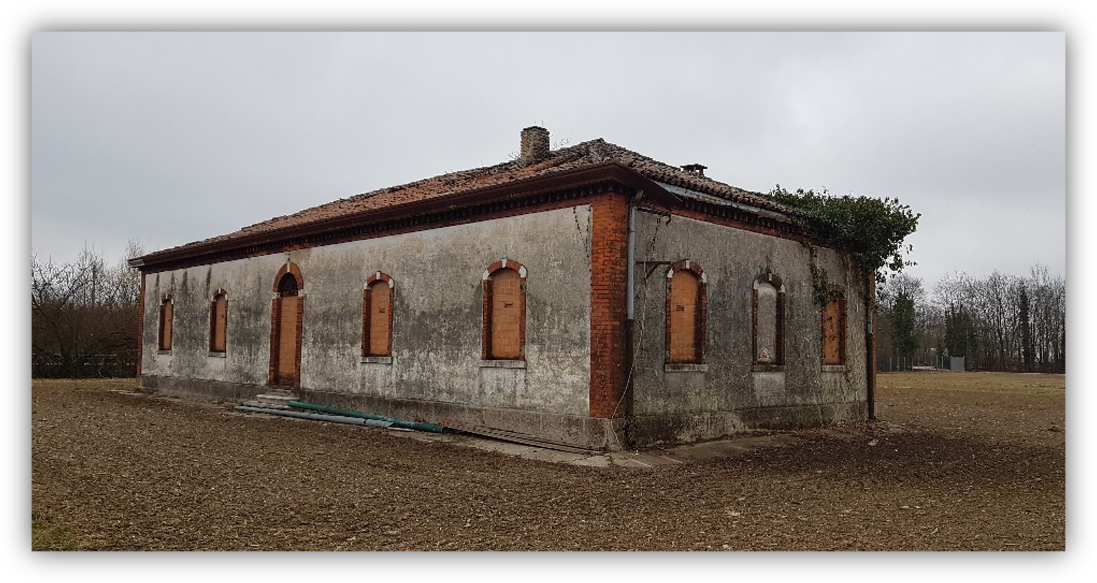 L’immobile a pianta rettangolare, si presenta con una struttura muraria di mattoni e tetto a falde in coppi con orditura di legno. Le finiture sono semplicissime senza pregi particolari. Lo stato conservativo e manutentivo non è buono e recentemente è stato messo in sicurezza per il parziale crollo della copertura.