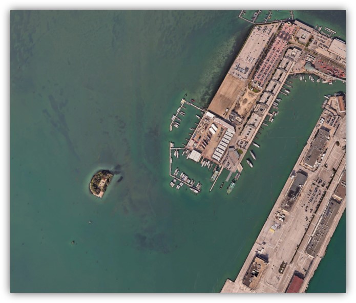 L’isola delle Trezze, è stata un tempo utilizzata per scopi militari, su di essa infatti era stato realizzato un manufatto bellico di difesa del territorio lagunare. L'isola rimase, nel secondo Novecento, in disuso; nel 1975 fu data in concessione alla Venezia Gas (in seguito assorbita da Italgas spa) che vi realizzò delle installazioni automatizzate per la decomposizione del metano; il manufatto in cemento che ospita i sistemi di controllo, le caldaie e il serbatoio d’acqua si sono sovrapposti alle strutture storiche dell’isola. Attualmente l’isola mantiene la sua ultima funzione impiantistica per la decompressione del gas metano.