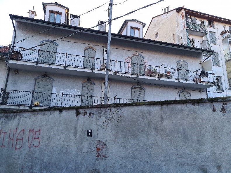 L’edificio, a destinazione prevalente residenziale con aree scoperte pertinenziali, venne edificato nella prima metà del ‘900 ed ha subito un’importante ristrutturazione a fine anni ’80. si eleva su tre piani fuori terra, oltre uno sottotetto ed uno interrato, è servito da un vano scala che collega tutti i piani. La struttura portante risulta in laterizio e c.a. con pilastrature che in parte hanno sostituito gli originari setti portanti. Il tetto in latero cemento presenta lucernari ed abbaini.