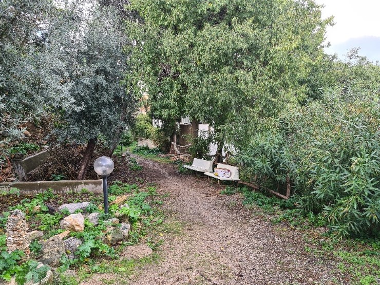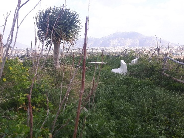 Il compendio è costituito da un lotto di terreno con ruderi di una costruzione di antica fattura, accessibile attraverso un cancello carrabile al civico 28 di via Boccadifalco, vicino a Piazza Pietro Micca. Il compendio, che si estende per complessivi 5.117 mq catastali, si sviluppa su un’altura rispetto alle vie Boccadifalco e Umberto Maddalena ed è caratterizzato da porzioni in forte pendenza. Il terreno (particella 352) è sistemato con percorsi pedonali e terrazzamenti, piantumati con essenze arboree tipiche mediterranee. Nell’area, lungo il confine nord-ovest, si trova una vasca per la raccolta delle acque, mentre lungo il fronte orientale del lotto (prospiciente via Umberto Maddalena) si trovano i ruderi di una costruzione rurale (particella 353) in muratura portante. In origine, durante la dominazione borbonica, questa costruzione era destinata alle soste e al rifocillamento durante le battute di caccia. Del fabbricato, che si sviluppava su più elevazioni con pianta ad “L”, oggi sono visibili solo alcuni paramenti murari e un corpo a due elevazioni.