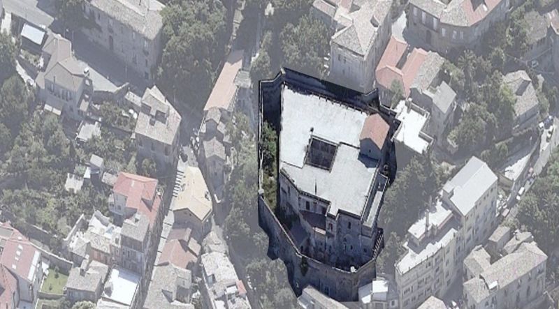 L'edificio è composto da un volume a due piani fuori terra ed aree pertinenziali consistenti in una fascia libera compresa tra le mura e l’ex edificio carcerario. L’accessibilità è garantita da una serie di assi stradali N/S ed E/O che si collegano alle funzioni principali presenti in città. Fu realizzato all’interno di un antico convento Agostiniano intorno al XV secolo come “struttura fortificata” circondata da mura e collegata al sovrastante castello aragonese. Le modificazioni intervenute nel tempo con le successive trasformazioni, la prima in ospedale e la seconda in carcere, non permettono di avere una chiara identificazione dell’impianto originario del convento agostiniano.