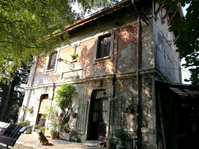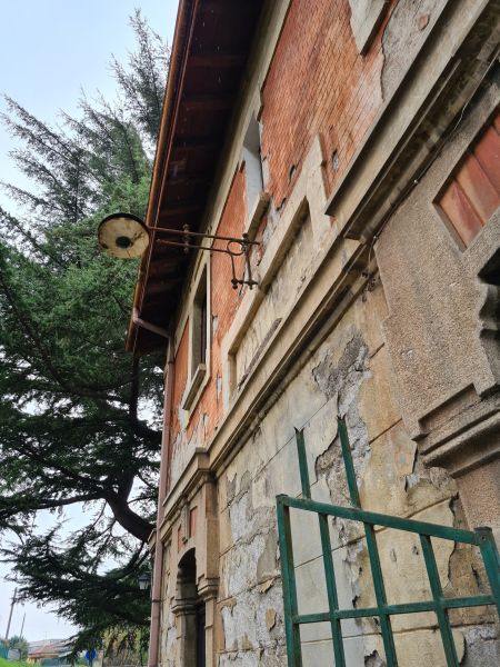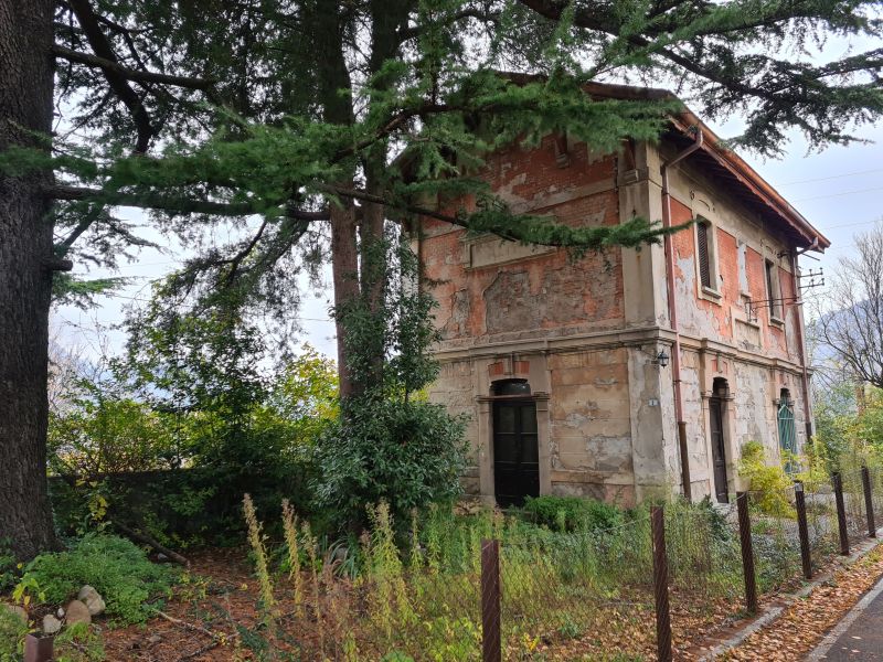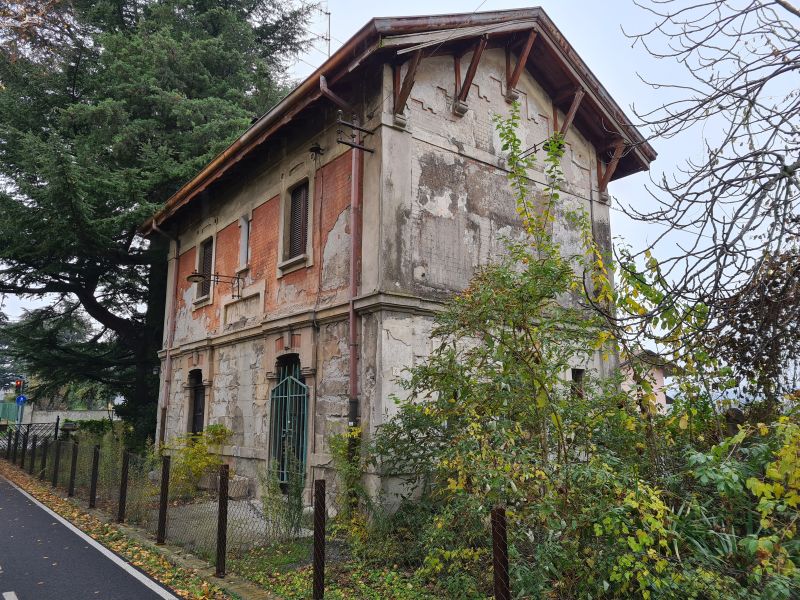 L’immobile risale ai primi anni del 1900 e fa parte del sistema di fabbricati legati al funzionamento della Ferrovia Valle Brembana che tra il 1906 e il 1966 collegava Bergamo con San Pellegrino Terme e Piazza Brembana. L'ex stazione è simile ad altre presenti lungo la linea, rispetto alle quali si differenzia per il salto di quota tra la facciata ovest e il terreno, che presenta un basamento in pietra ad opus incertum simile al fronte principale della stazione di Sedrina. L'edificio ha una planimetria rettangolare e si sviluppa su due livelli fuori terra oltre al sottotetto, destinati in origine a sala d'attesa e alloggio del capostazione. Le murature portanti sono miste, l'orditura del tetto in legno, la copertura a due falde. Alla semplicità planimetrica fanno da contrappunto raffinati apparati decorativi, propri del repertorio di inizio Novecento che si potrebbero definire di tipo liberty.