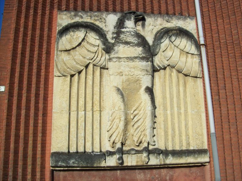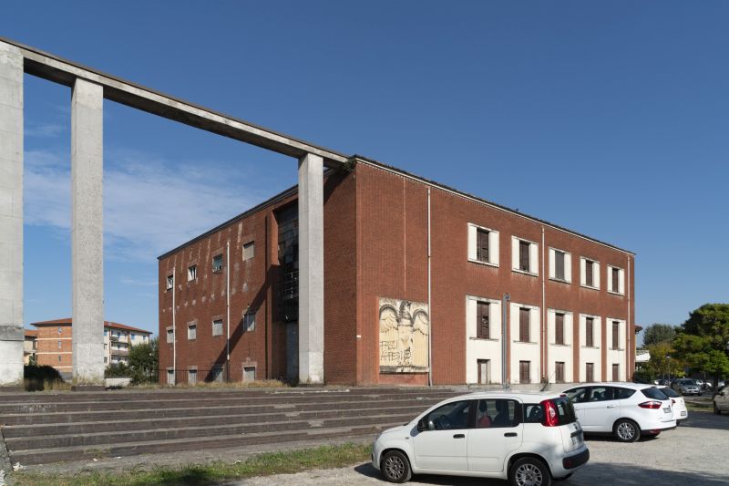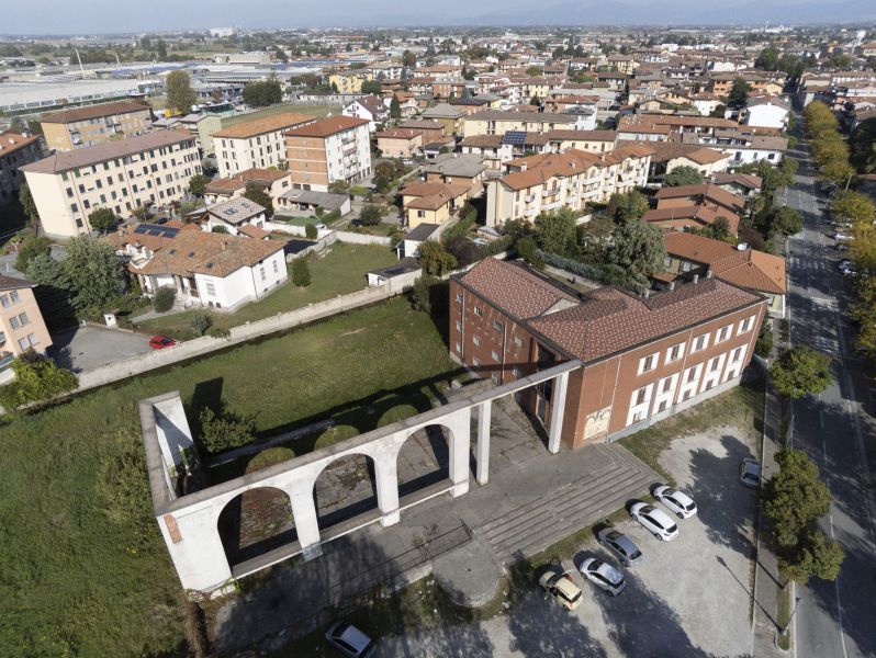 Ex casa Littoria o casa del disciolto fascio di combattimento di Caravaggio, pensata dal regime fascista come spazio dedicato al governo del territorio e realizzata tra il 1935 e il 1937 in forme auliche e razionaliste dall'architetto bergamasco Alziro Bergonzo. Dichiarata di rilevante interesse storico artistico è sottoposta a tutte le disposizioni di tutela contenute nel D.Lgs. 42/2004. Le facciate sono rivestite parte in mattoni faccia vista e parte in intonaco tirato a rustico su cui spicca il fregio dell’aquila fascista. Il complesso è caratterizzato da un imponente peristilio in cui si svolgevano manifestazioni di carattere politico. Ha avuto funzioni alloggiative nel corso degli anni 1945-2004 che ne hanno modificato la struttura interna portando alla creazione di un piano inframezzo, scale e muri divisori. Oggi si presenta ancora nella sua imponente architettura per essere adeguatamente valorizzato. Immobile di tre piani fuori terra con area esterna di pertinenza. Il piano terra ha una superficie utile di circa 500,00 mq con destinazione commerciale; i due piani superiori destinati ad uso residenziale misurano circa 415,00 mq l’uno. L’immobile è completamente da ristrutturale.