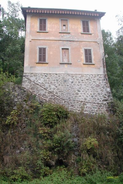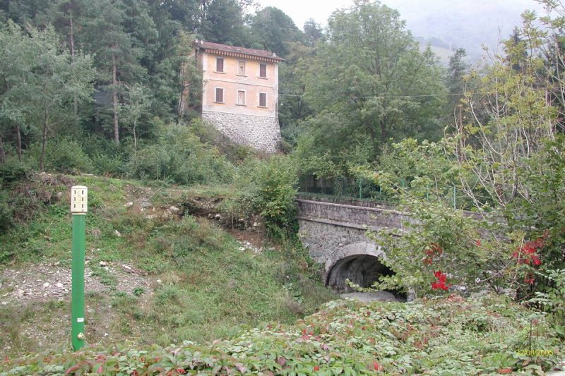 L’edificio appartiene al sistema di fabbricati della Ferrovia della Valle Seriana, inaugurata nel 1884 e rimasta attiva fino al 1967, oggi riconvertita in percorso ciclabile. La Stazione si colloca tra il fondovalle e l’altopiano di Clusone, difatti, si caratterizza da un alto basamento in pietra dal profilo a scarpa, unito a una rampa e una scalinata che consentivano di superare il dislivello e di raggiungere la quota dei binari. Il resto della Stazione riflette i modelli tipologici e formali applicati ad altre stazioni della linea: planimetria rettangolare, murature portanti con solai e orditura del tetto in legno, copertura a due falde, manto in tegole marsigliesi. Il piano terra ospitava la sala d’attesa e l’ufficio del capostazione che disponeva di un piccolo alloggio al piano superiore. I prospetti sono caratterizzati da un disegno a fasce verticali e orizzontali, con aperture evidenziate da cornici lineari chiuse da persiane in legno a due ante battenti. L’edificio conserva i suoi elementi essenziali di pregevole opere di inizio Novecento e il significato di testimonianza della storica linea ferroviaria.