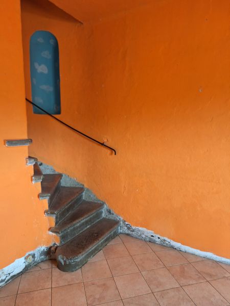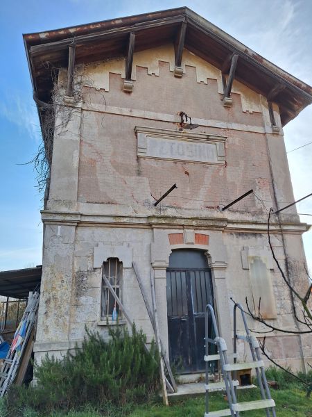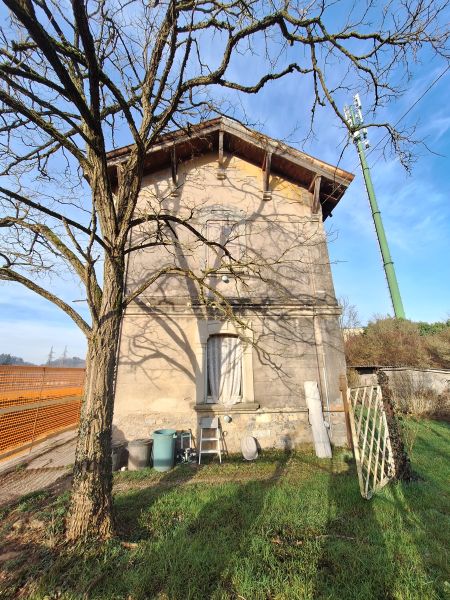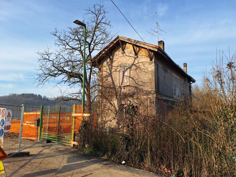 L’immobile risale ai primi anni del 1900 e fa parte del sistema di fabbricati legati al funzionamento della Ferrovia Valle Brembana che tra il 1906 e il 1966 collegava Bergamo con San Pellegrino Terme e Piazza Brembana. L’edificio, ad impianto rettangolare, si sviluppa su due livelli fuori terra più sottotetto non accessibile. Le murature portanti sono in mattoni pieni, i solai lignei, il tetto a doppia falda con orditura in legno e manto di tegole marsigliesi. I prospetti, sebbene in pessimo stato conservativo, presentano ancora numerose tracce dell’originario apparato decorativo di ispirazione liberty, che alterna decorazioni ad intonaco, basamento in bugnato e mattoni faccia-vista al piano primo. L’uso del cemento decorativo propone fasce che riproducono partizioni strutturali e i profili delle aperture. La planimetria del 1942 ripropone le destinazioni d’uso originarie, con sala d’attesa e latrina al piano terra e l’alloggio del capostazione su due livelli, collegati da una scala interna. Un pollaio sul retro dell’area di pertinenza completava la consistenza immobiliare. Numerose superfetazioni di epoca recente, probabilmente attribuibili ai diversi utilizzatori che si sono succeduti negli anni.