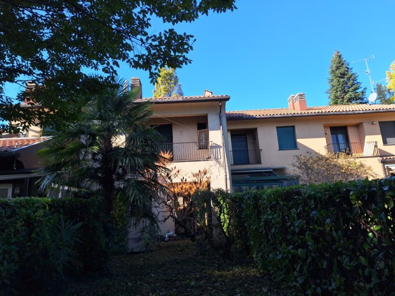 Trattasi di Villa a schiera posta nella mezzeria di una schiera di ville ad impianto rettangolare, aggregate tra loro lungo i lati con disallineamento, così da comporre un complesso dalla forma irregolare. La villa riprende la stessa tipologia edilizia delle restanti cellule abitative: due livelli fuori terra ed uno interrato con giardino anterere con cancello metallico alto circa 120 cm, mimetizzato da delle siepi e giardino posteriore prospicente una grande area verde (comune) attrezzata e alberata. Gli impianti sono autonomi. La superficie lorda è di circa 135 mq. Il box di pertinenza è posizionato in un corpo di fabbrica attiguo e misura circa 17 mq.