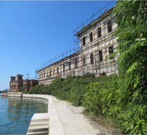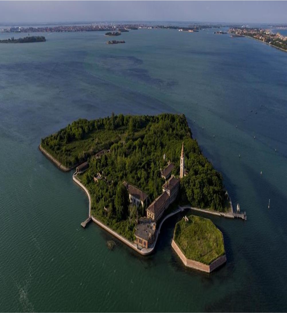 Il nome isola di Poveglia identifica in effetti un piccolo arcipelago ubicato a sud della laguna di Venezia, di fronte all'isola di Pellestrina, ed è composto da tre isolotti ravvicinati che si conformano, approssimativamente, in un tronco di piramide e si sviluppano su una superficie complessiva di 72.500 mq. Il più piccolo dei tre isolotti è denominato "Ottagono di Poveglia” per la particolare forma tipica dei più antichi sistemi difensivi di Venezia; come il resto dell'isola, anch'esso è delimitato con un muro di contenimento in mattoni di terracotta, mentre, seppur collocato a pochi metri dall'isola centrale, non è fisicamente collegato ad essa. Si colloca al centro la più grande delle tre isole, di circa 39.000 mq, l' unica che presenta edificazioni di diverse dimensioni e tipologia, tutte in uno stato di evidente degrado. L'isola risulta essere stata abitata fin dal V secolo, raggiungendo circa ottocento famiglie nel XIV secolo. Dal XVIII secolo ebbe inizio la vocazione sanitaria dell'Isola: della fine del XVIII secolo è il primo ospedale, il Lazzaretto, utilizzato per arginare l'epidemia di peste. Dal periodo Napoleonico alla seconda guerra mondiale si susseguirono una serie di demolizioni e ristrutturazioni che miravano a conciliare la funzione militare con quella sanitaria e che non risparmiarono l'antica chiesa dedicata a San Vitale e il campanile adibito a faro. Gli edifici oggi esistenti sono per lo più padiglioni ospedalieri edificati tra il 1900 e 1945 e delle antiche costruzioni religiose e militari fortificate non rimane traccia. A settentrione è presente un ultimo isolotto, totalmente inedificato, collegato al precedente per mezzo di un ponte e destinato fino a tempi più recenti ad ospitare diverse coltivazioni agricole. Ad oggi, tutti gli edifici presenti sull’isola, anche a causa del prolungato inutilizzo e dell’assenza di interventi manutentivi, si presentano in precarie condizioni generali, soprattutto per quanto riguarda le coperture, nella maggior parte dei casi.