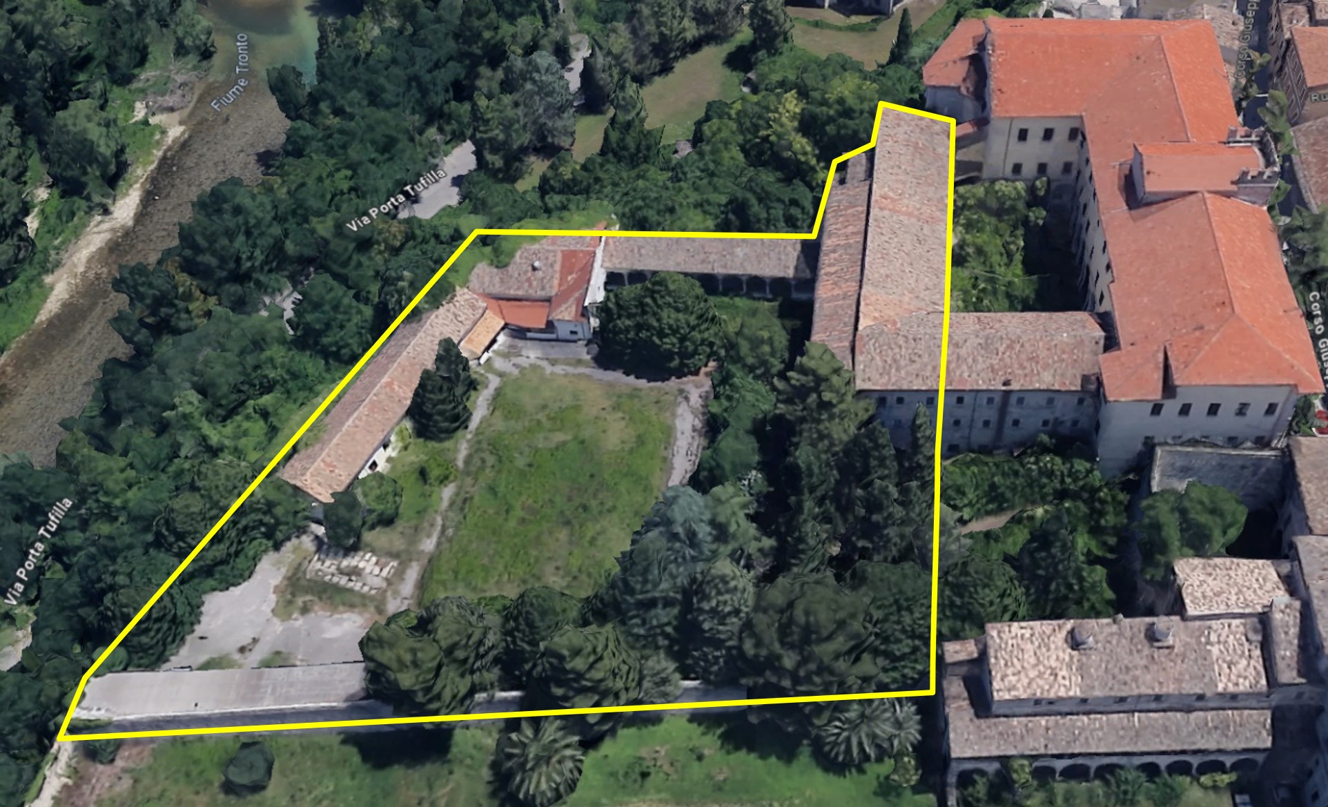 Il compendio è situato nel centro storico di Ascoli Piceno, con accesso dal civico 242 di Corso Mazzini, in un’area oggetto di rigenerazione urbana, come inserita nel Piano Città degli immobili pubblici, in cui si segnalano gli interventi che interesseranno gli adiacenti immobili di proprietà del Comune costituiti dall’Ex Distretto Militare in cui saranno ricollocati uffici comunali e dal Palazzo Saladini-Pilastri che diverrà un Headquarter. Si segnala che la restante porzione del Compendio è destinata a sede della Soprintendenza.