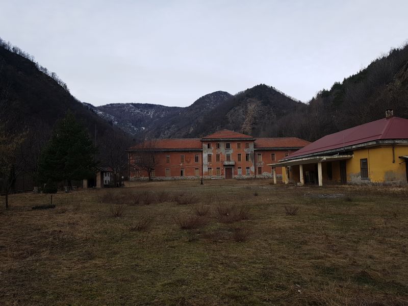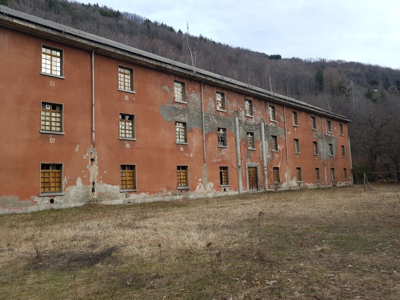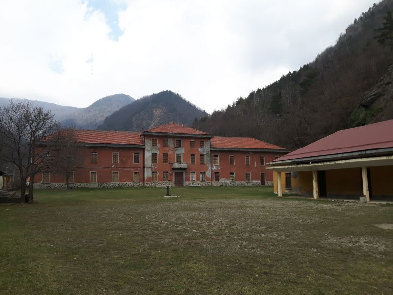 Il complesso si sviluppa su di un’area in parte pianeggiante ricavata con opere di livellamento negli anni 1930 e seguenti dall’Amministrazione Militare che edificò in tale località, poco oltre l’abitato centrale del paese di Perrero una grande caserma per l’accasermamento delle Truppe Alpine. Oltre all’area ove sono edificati i fabbricati, la proprietà demaniale si completa con terreni boschivi circostanti aventi giacitura inclinata, posti nella zona confinante a monte dei fabbricati.