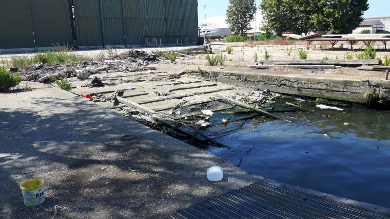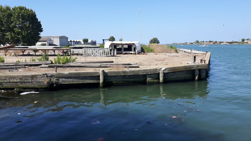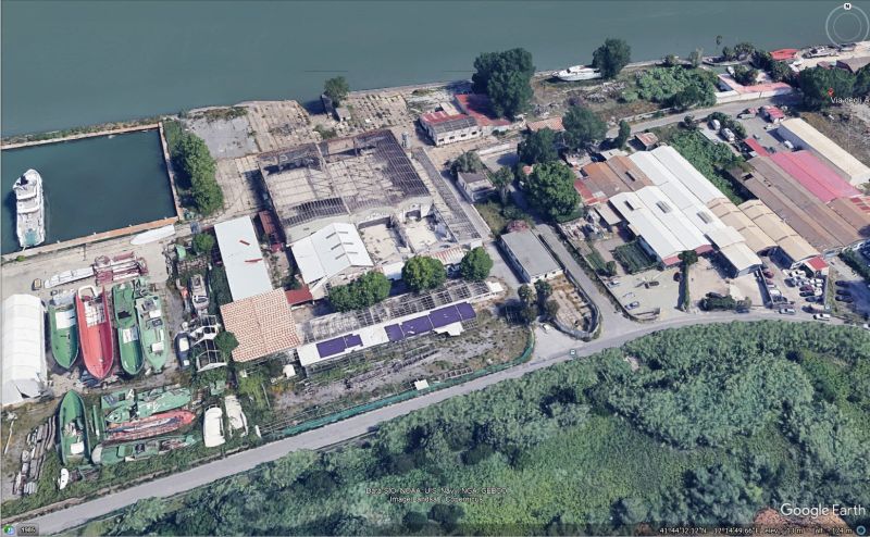 Via dell’Idroscalo 182, via degli Atlantici 68, 70, Lido di Ostia, Roma. Il compendio è costituito da capannoni/manufatti per la maggior parte in stato di fatiscenza e area scoperta con affaccio alla foce del fiume Tevere; all’area si accede tramite scivolo per varo-alaggio barche. Gli ingressi via terra sono due, entrambi carrabili, uno lungo via dell’Idroscalo e uno lungo via degli Atlantici. “Porzione Ex Cantieri Canados”: in origine base militare italiana di mezzi idrovolanti per la Marina Militare Italiana, per la Guardia Costiera e la Capitaneria di porto, in particolare, impianto per ammaraggio e decollo di idrovolanti ed aerei anfibi dell’aviazione italiana, oggi in disuso (Idroscalo Carlo Del Prete); dopo la Seconda guerra mondiale, adibita a mercato della nautica da diporto (Ex Cantieri Canados).