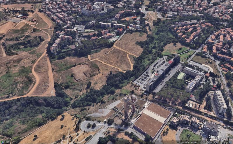 Trattasi di un'area incolta e interclusa di circa 21.000 mq, accessibile per mezzo di due cancelli carrabili posti rispettivamente alla fine della via Ragazzi del ’99 e della via Matteo Bartoli installati su proprietà privata (di seguito identificata come lotto A e lotto B). L'area ha confini non materializzati e giacitura prettamente pianeggiante. Il lotto di terreno “A”, di superficie catastale pari a 6.080 mq, è censito in catasto terreni al foglio 881 particella 564 e risulta accessibile con ingresso posizionato tra la fine della via Ragazzi del ’99 e la particella 1284 al foglio 881 di proprietà di privati. Il lotto “B”, di superficie catastale pari a 15.120 mq, censito in catasto terreni al foglio 881 particella 565, è accessibile attraverso un ingresso posizionato in prossimità della fine della strada via Matteo Bartoli e la particella 835 del foglio 881.