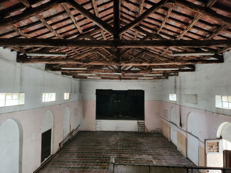 L'immobile si sviluppa su due livelli fuori terra, con ulteriori porzioni al piano seminterrato ed interrato. Si caratterizza in pianta per la giustapposizione di due volumi regolari ortogonali tra loro. Il corpo longitudinale adibito ad atrio di ingresso, spazi di distribuzione e salone/teatro e il corpo trasversale adibito agli spazi secondari. Con struttura in muratura portante, solai costituiti da travi e tavelloni, presenta una copertura a doppia falda con capriate, travetti in legno, tavelline e tegole in laterizio. Le facciate esterne sono rivestite con intonaco civile e pittura per esterni. Si accede all’edificio da tre ingressi al piano terra a livello stradale.