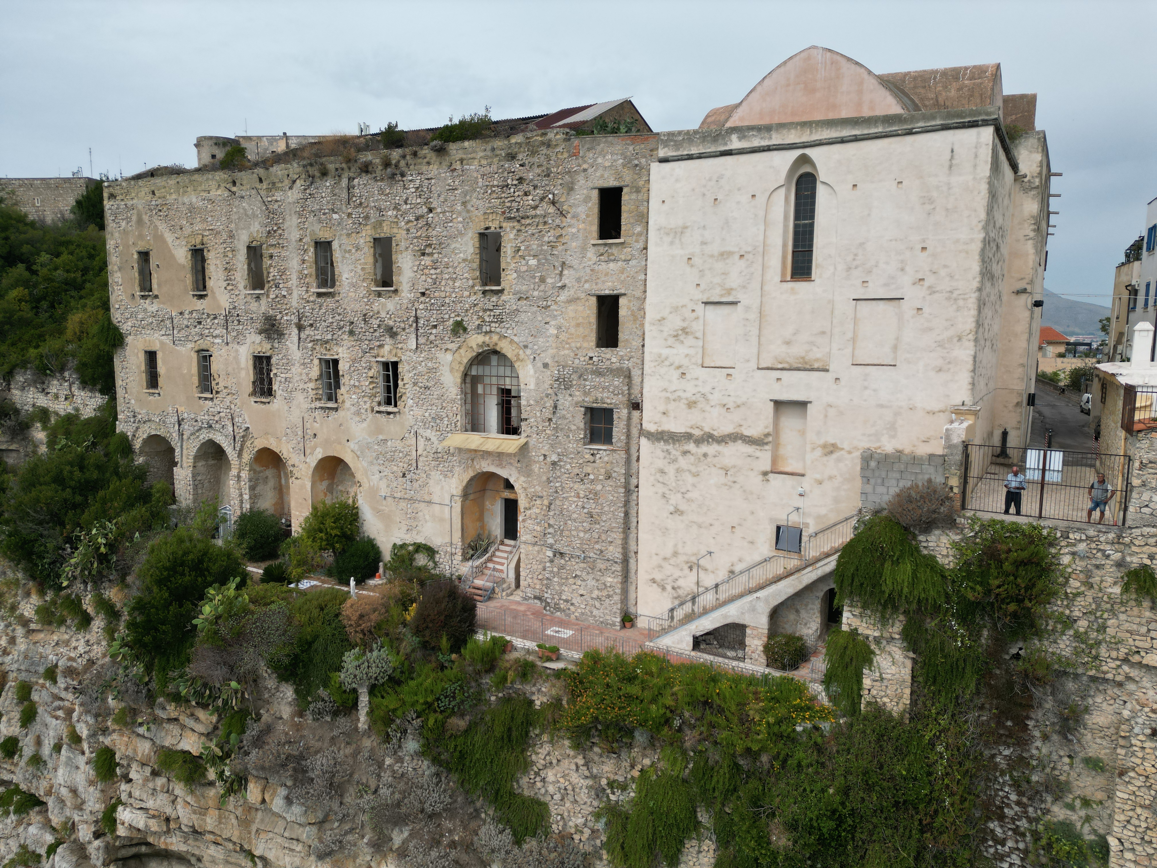 L’immobile si trova nella parte antica della cittadina laziale, nella parte più alta del quartiere medievale di Sant’Erasmo, una zona storica posta sul promontorio di Monte Orlando, arroccato a picco sul mare. Il bene è delimitato su un fronte dalla via Aragonese e sull’altro da vico Castello. L’accessibilità veicolare alla città è buona.