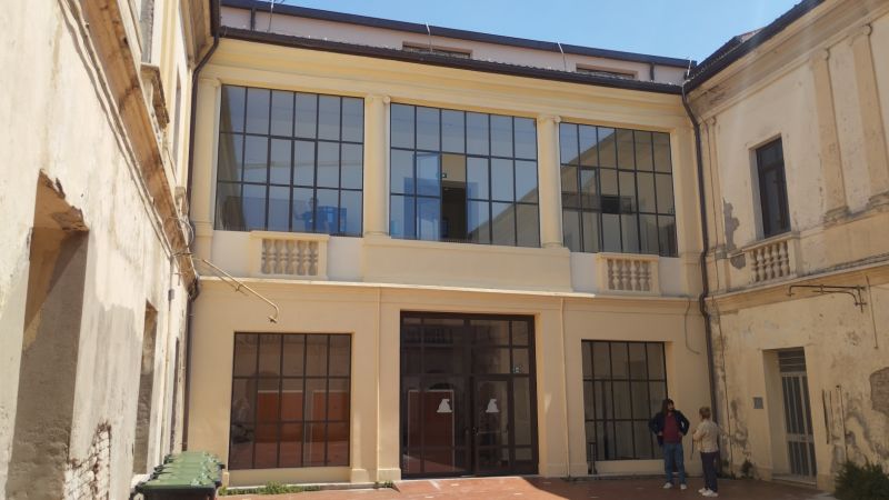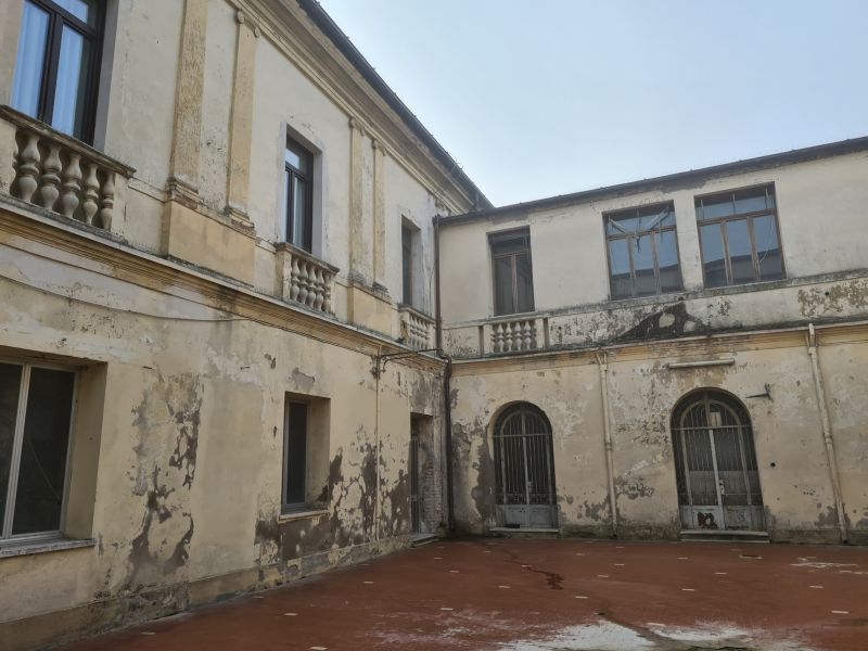 L'immobile, situato tra la chiesa di San Martino e il Santuario di Santa Maria delle Grazie, è costituito da una porzione ottocentesca, denominata palazzo Fracanzani, corrispondente alla parte dell'edificio che circonda il cortile interno, e da un'aggiunta novecentesca in stile razionalista, l'Ex Casa del Fascio, corrispondenrte al blocco prospiciente via Principe Amedeo e ad una piccola parte quadrangolare a sud-est della porzione ottocentesca. L'edificio a due piani fuopri terra, presenta struttura in muratura con copertura in parte piana e in parte con falde n legno, tavelle di cotto e manto in coppi. L'Ex Casa del Fascio, a tre piani fuori terra è caratterizzata da basamento in mano a bugnato leggero e porzione superiore ad intonaco separata da cornice marcapiano.
