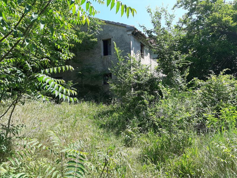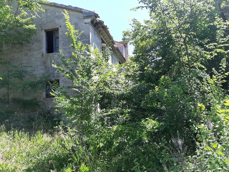 Il fabbricato a pianta nel complesso rettangolare, è costituito da un corpo centrale di tre piani fuori terra e due corpi laterali di due piani fuori terra. Il manufatto, in precarie condizioni strutturali, presenta struttura portante in muratura, solai in parte in legno in parte in putrelle di ferro e laterizio (voltine), paramento esterno intonacato, copertura a falde con struttura portante in legno e manto in coppi. Il piano terra è adibito a magazzino e cantine, oltre ad ex stalla, mentre gli altri piani, primo e secondo, sono adibiti ad abitazione. Sono presenti due scale, una esterna che conduce al piano primo e una interna che collega tutti i livelli della struttura. Le finiture, di modesta qualità, sono quelle tipiche delle case rurali. Gli infissi, interni ed esterni, sono in legno. La dotazione impiantistica è scadente: non è presente l’impianto di riscaldamento, mentre gli impianti presenti (elettrico, idrico sanitario) non sono più funzionanti.Addossata al lato posteriore del fabbricato è presente una tettoia, utilizzata come rimessa di mezzi agricoli, realizzata con strutture verticali in muratura e copertura con orditura in legno e sovrastanti lastre in eternit.